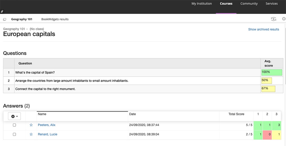 Monitor your students’ progress in real-time while they’re working on BookWidgets assignments.