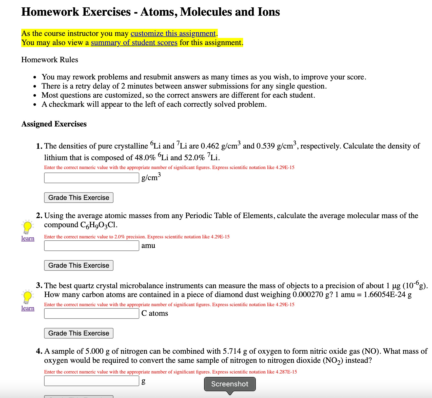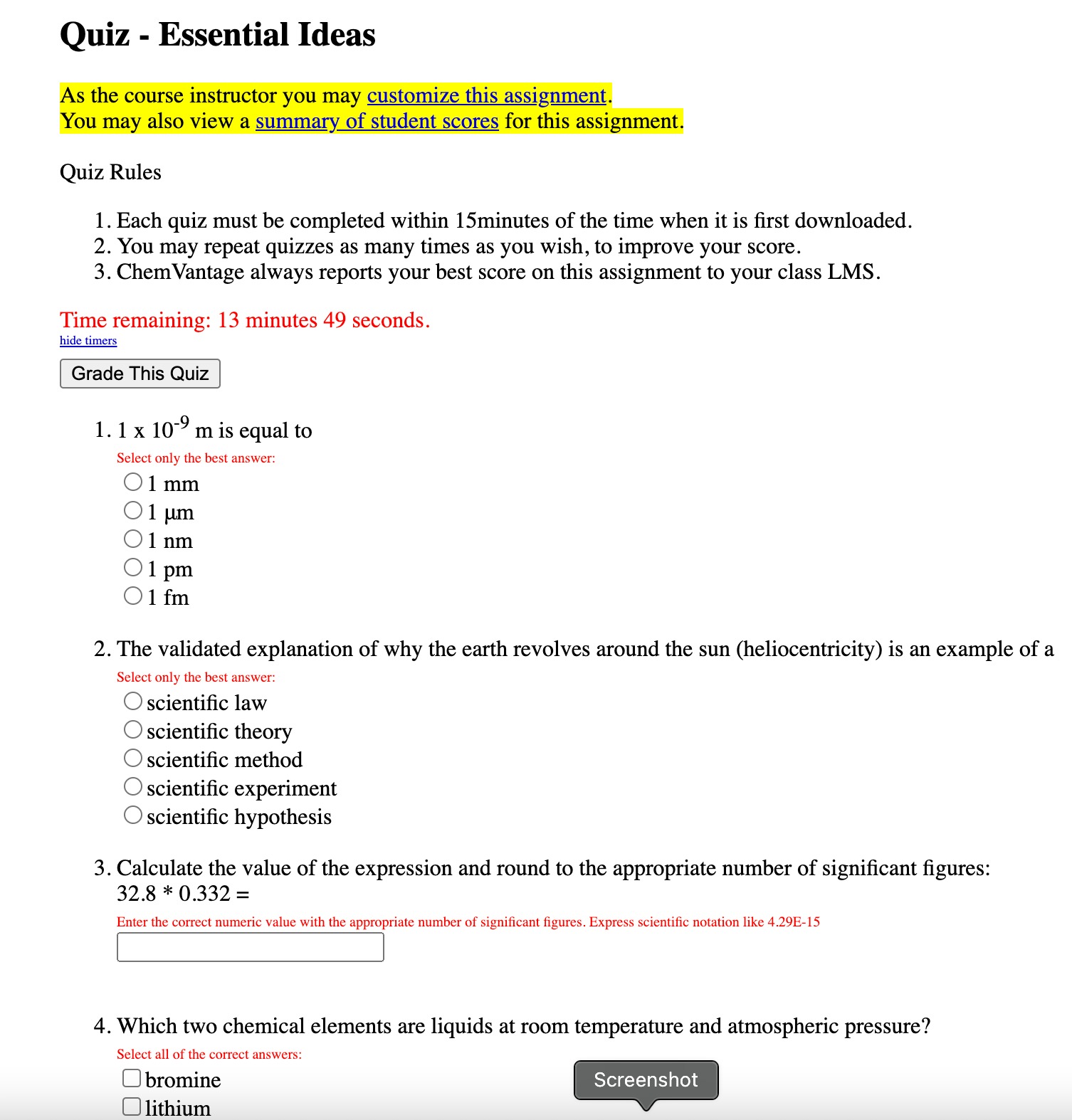 ChemVantage is an Open Education Resource offering quizzes, homework assignments and more for teaching and learning college-level General Chemistry.