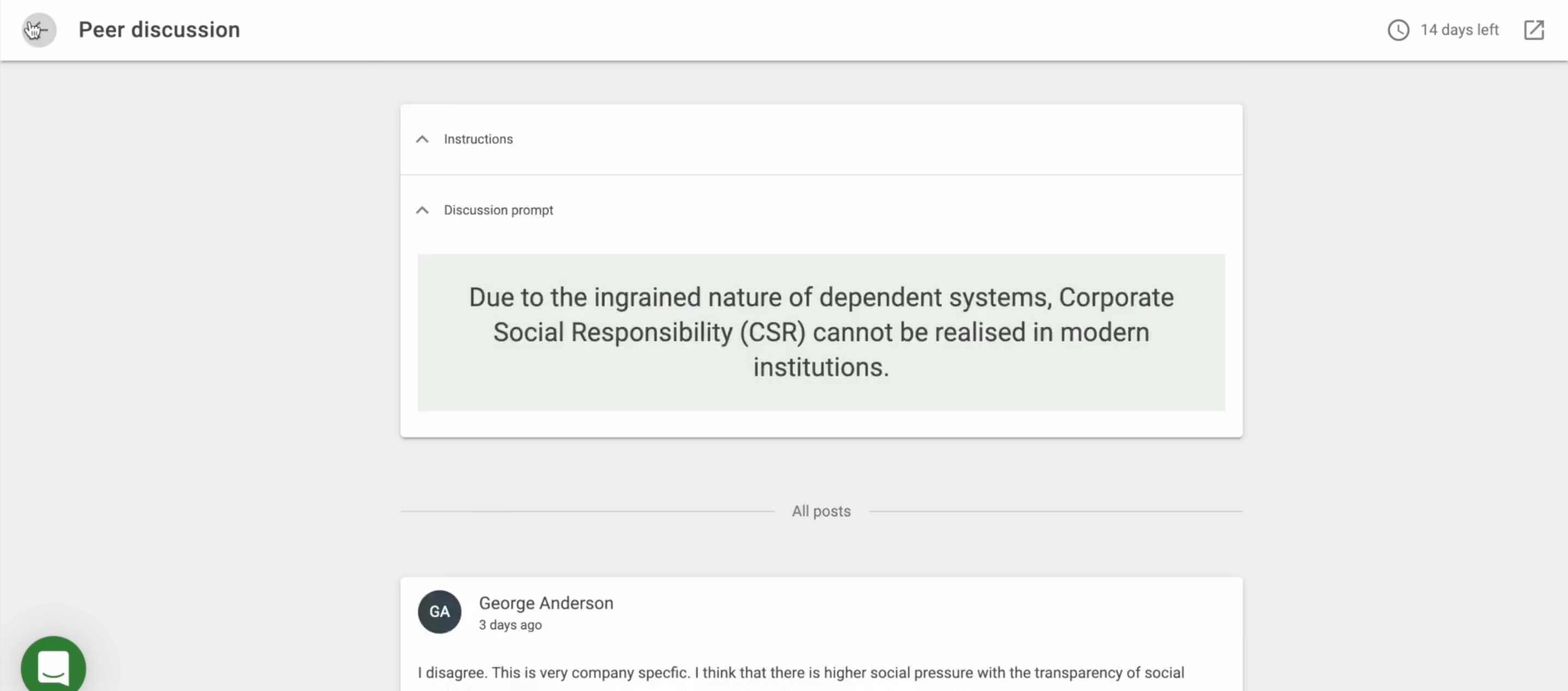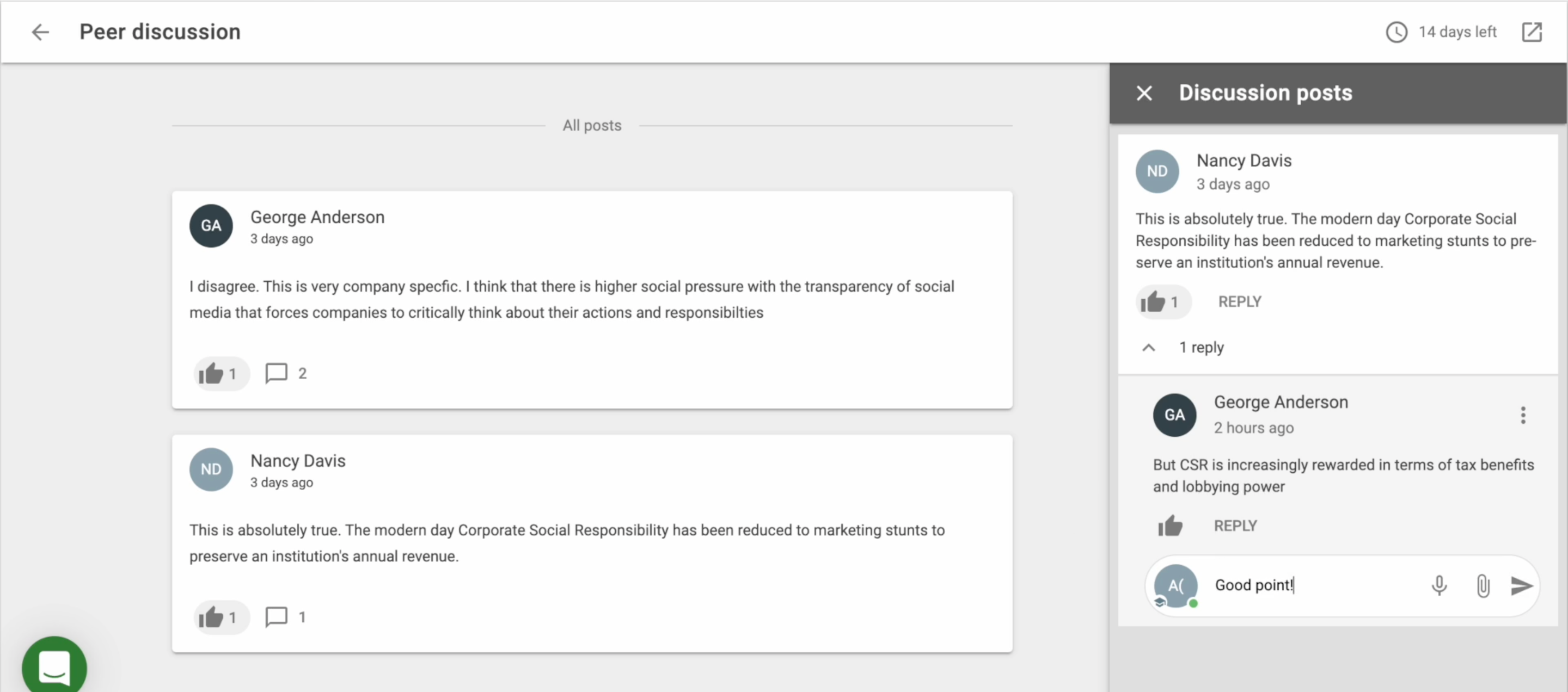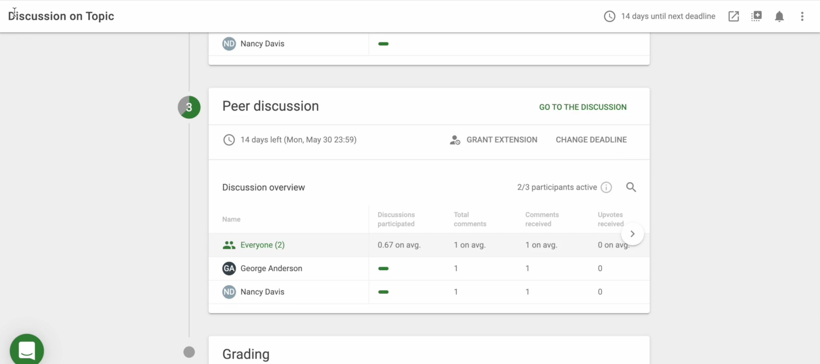 The Discussion on Topic tool allows teachers to structure a meaningful online discussion and drive peer learning in the classroom on course topics.