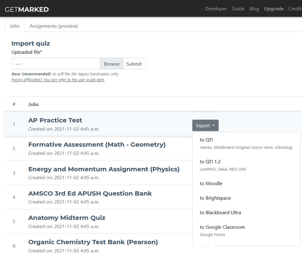 GETMARKED Digitaliser is a browser based tool that allows you to convert any Word document quiz into a Blackboard question bank in one click.