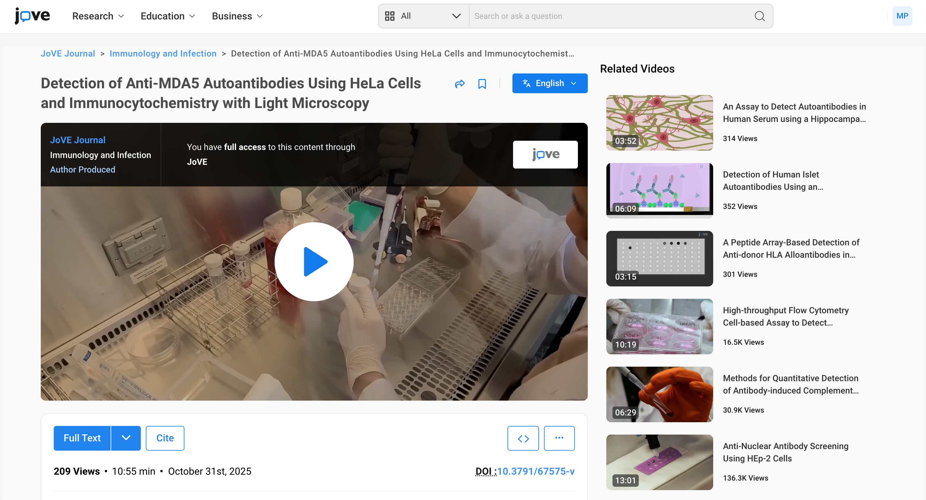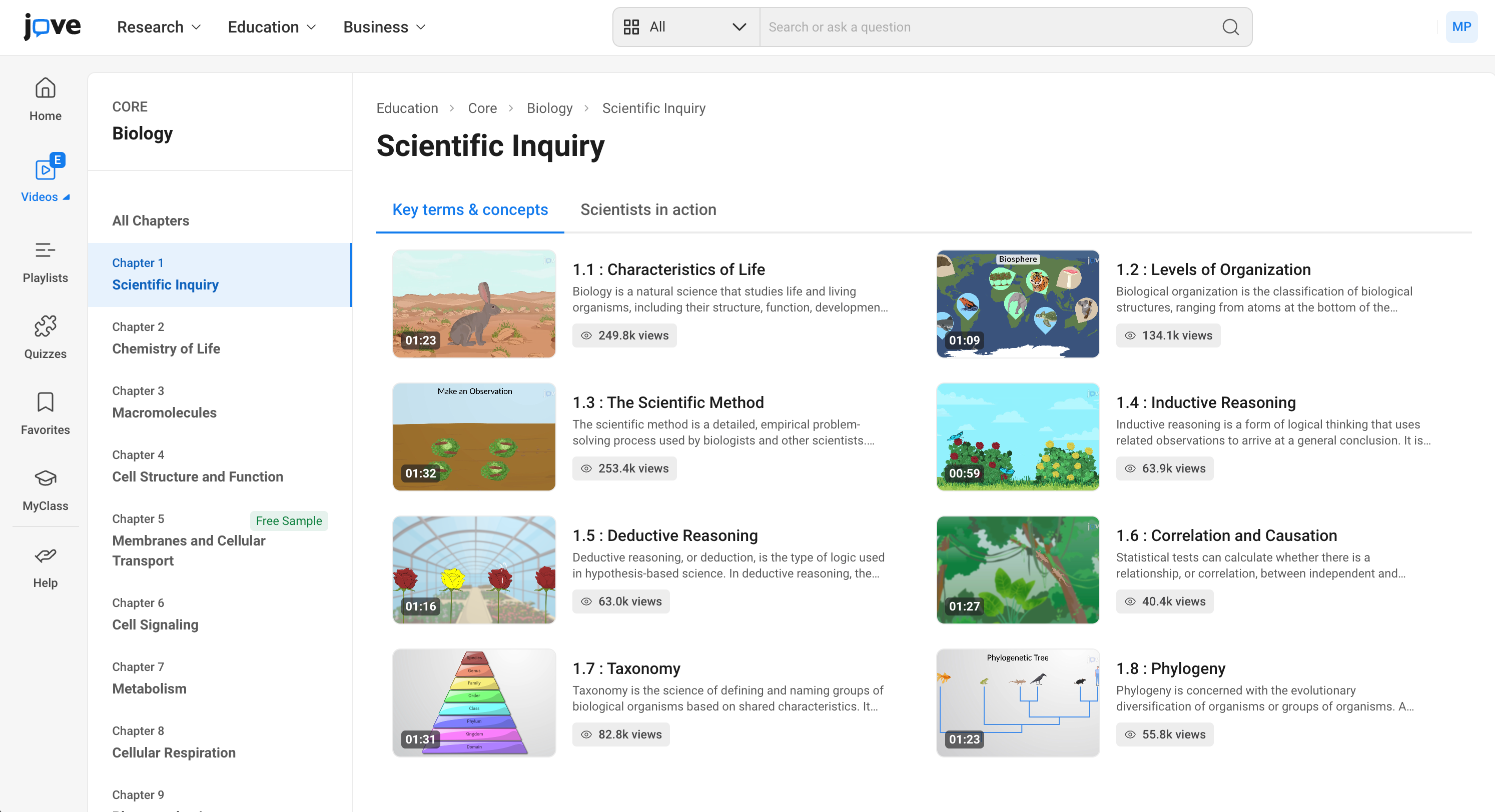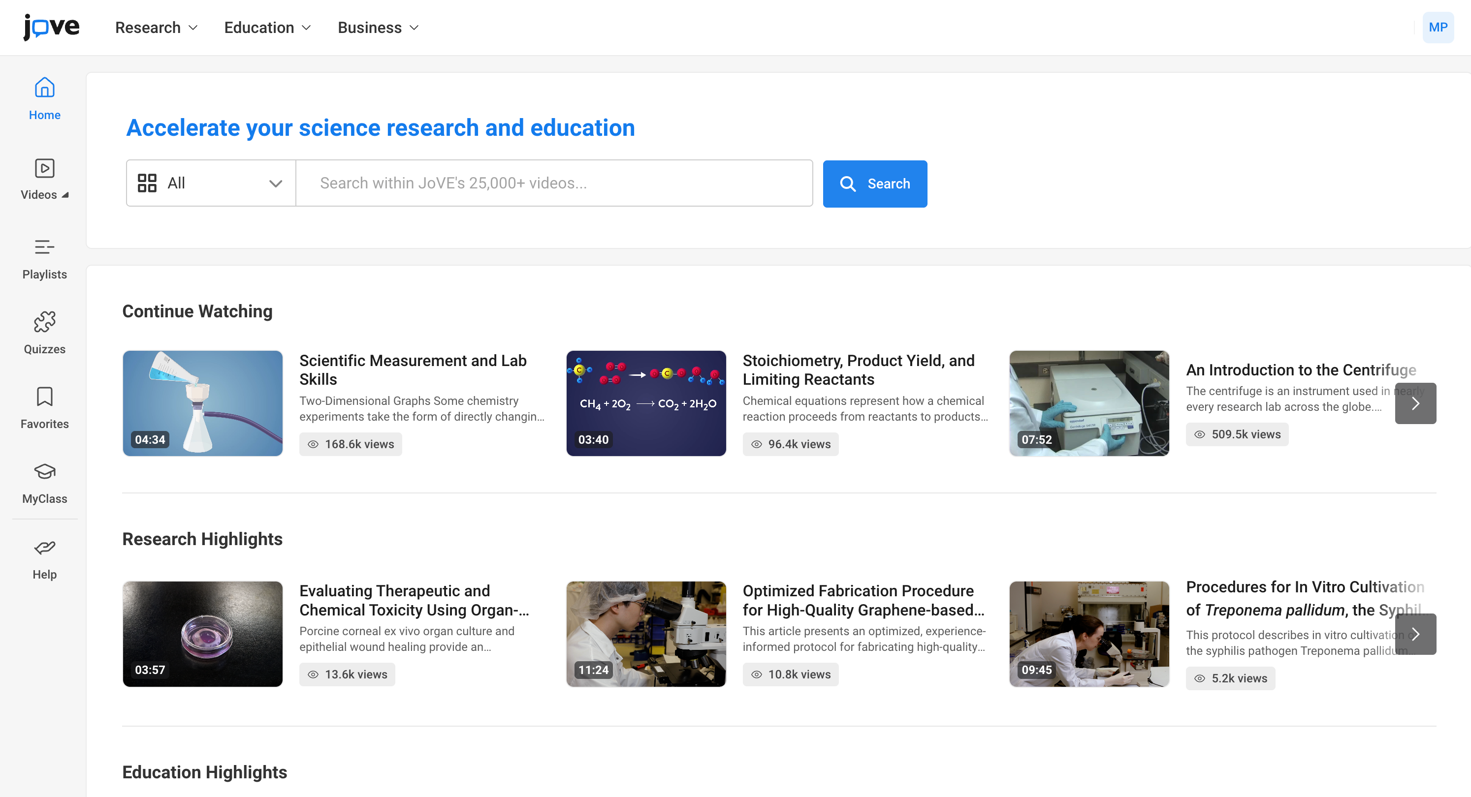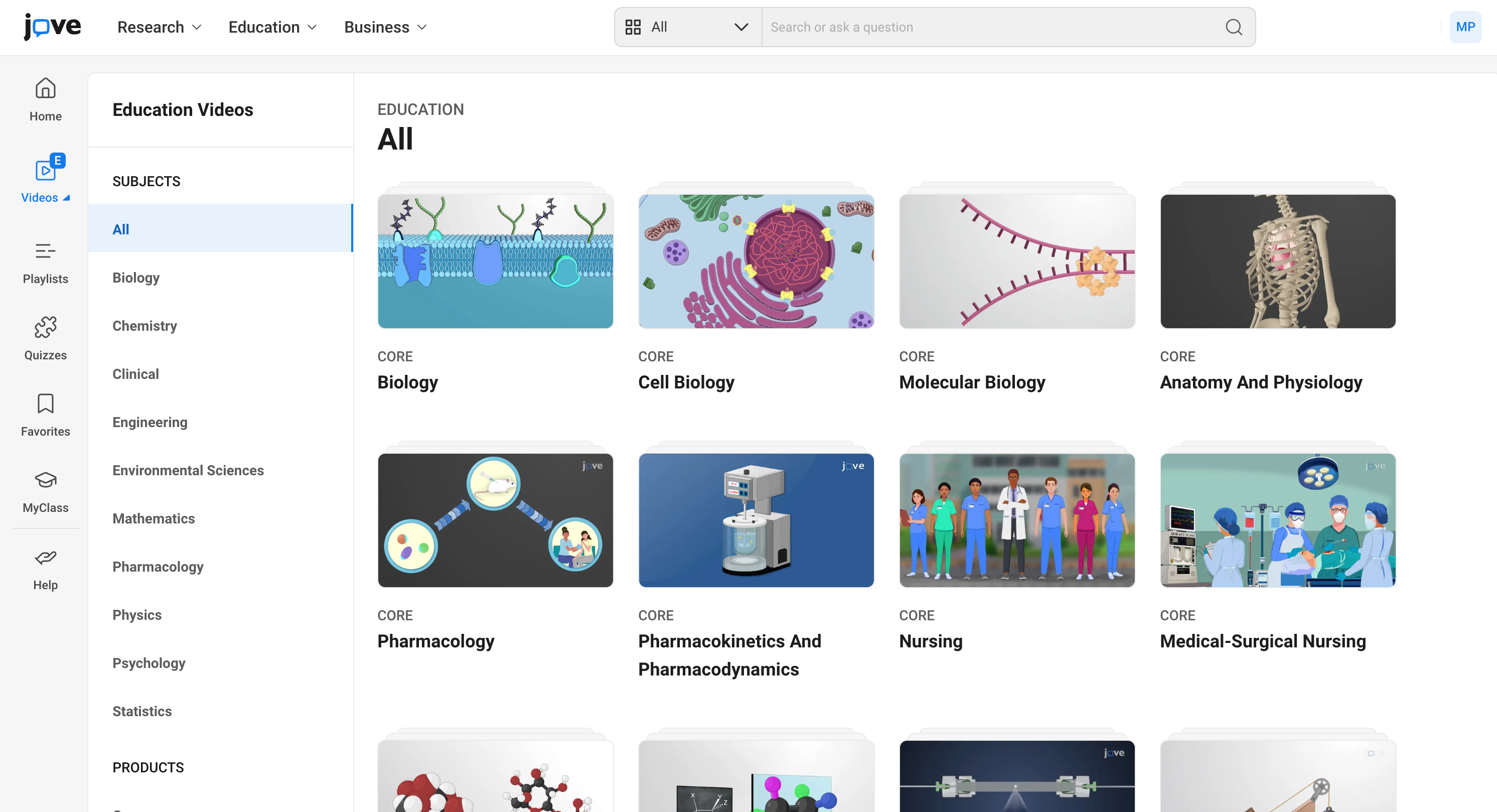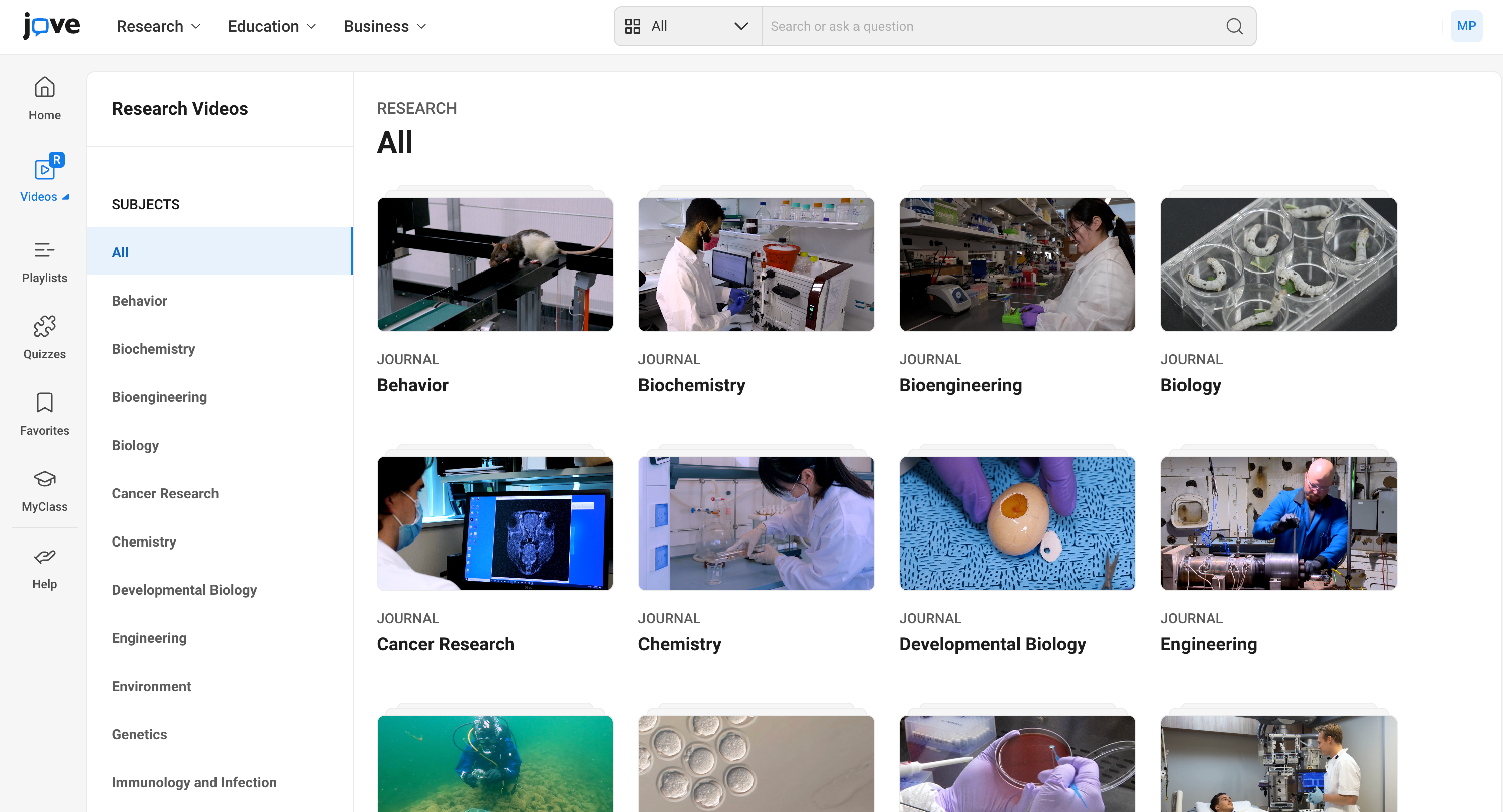 JoVE provides over 30,000 high-quality scientific videos designed to enhance teaching, learning, and research across a wide range of STEM disciplines — including Biology, Chemistry, Environmental Science, Psychology, Clinical Medicine, and Engineering.