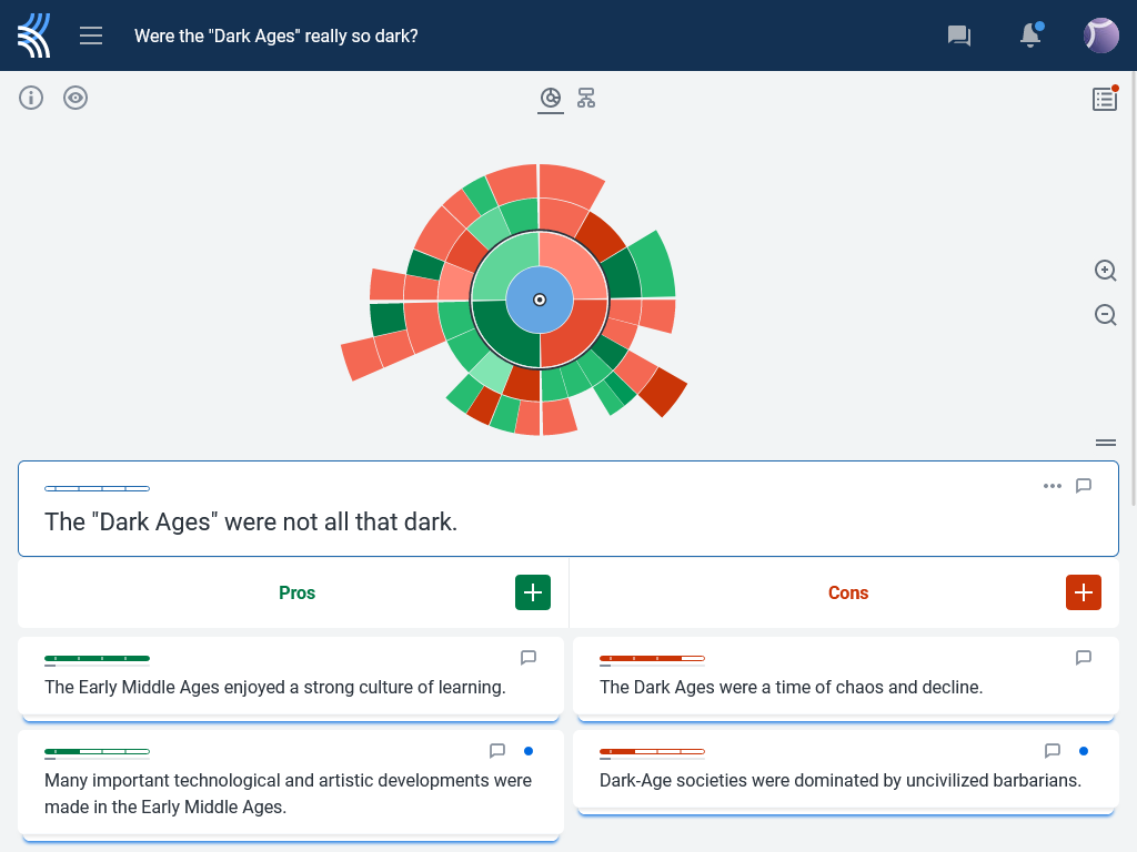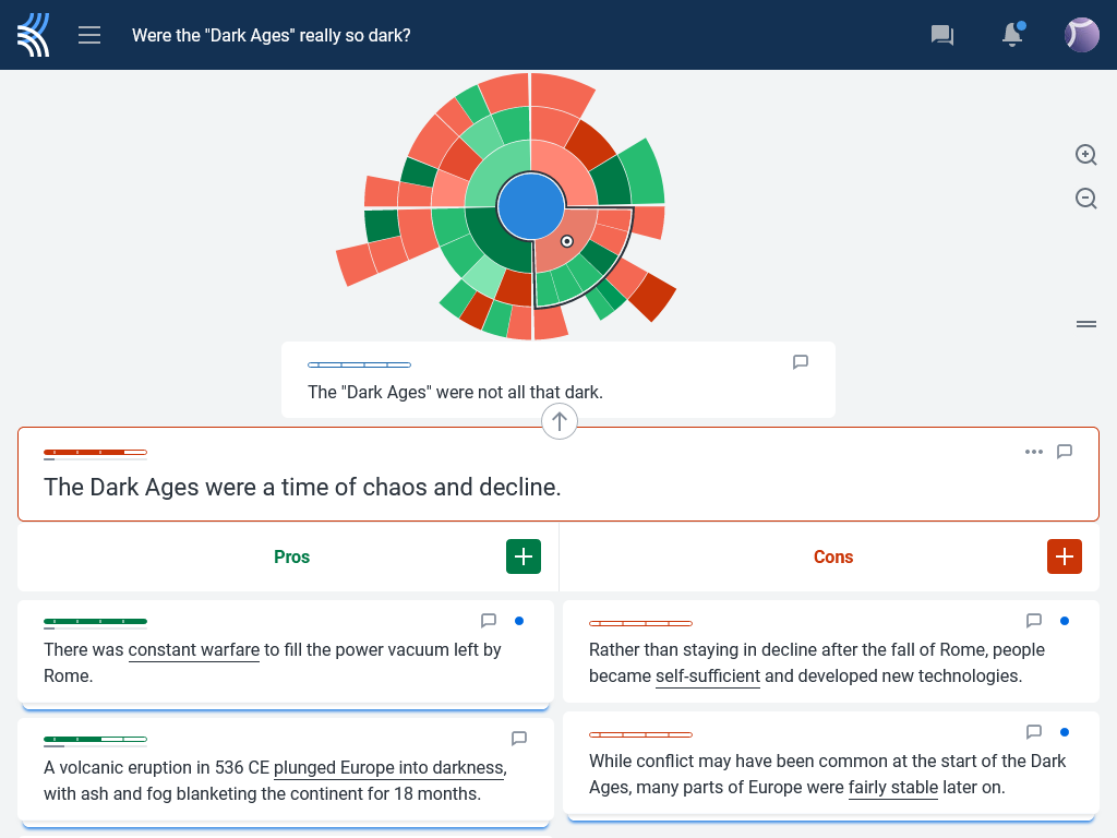 Kialo is designed for breaking down arguments into understandable chunks. The connective format makes it easy to follow how these simple ideas build on one another to form complex reasoning.