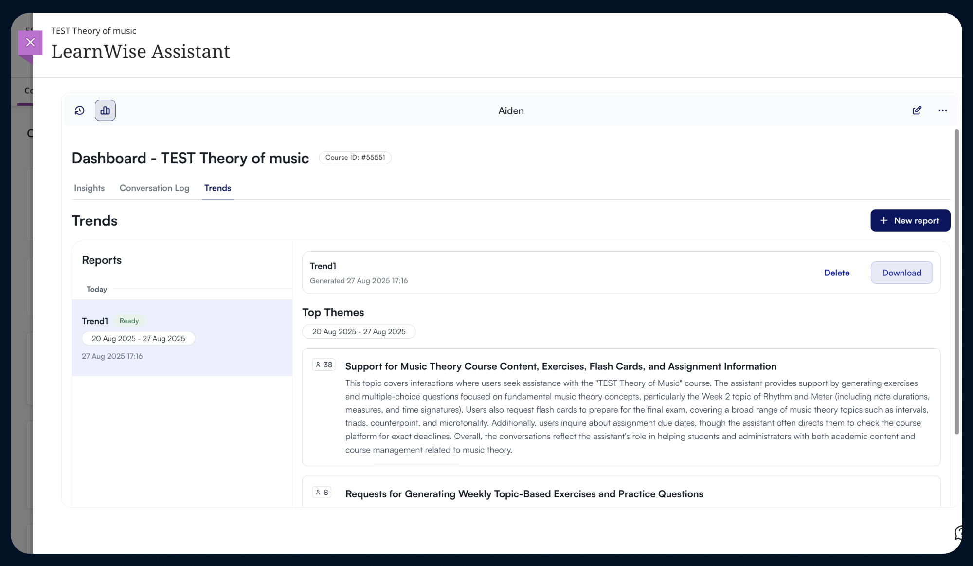 Insights Dashboard to gain valuable insights into the types of questions and concerns students are raising most often to strategically update resources and course designs, and ensure fewer repetitive queries.