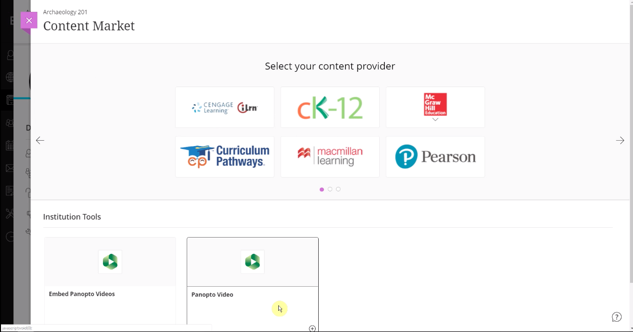 This LTI + REST integration allows instructors to easily access Panopto from inside their courses and quickly record, upload and manage videos.