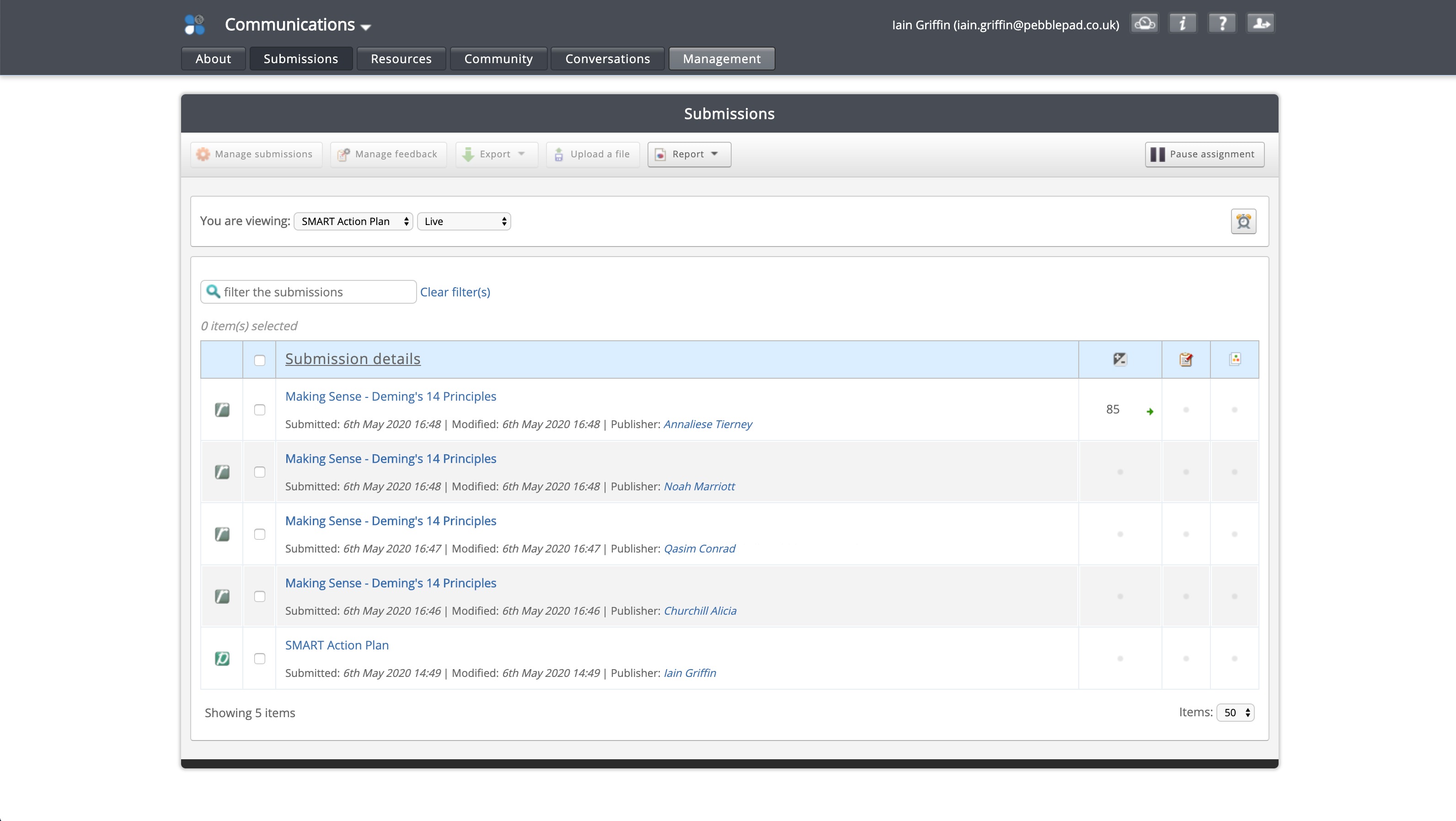 Our integration uses a combination of Blackboards API and LTI 1.0. LTI is used as the launch into PebblePad and Memberships and Grades are handled via the Backboards API.