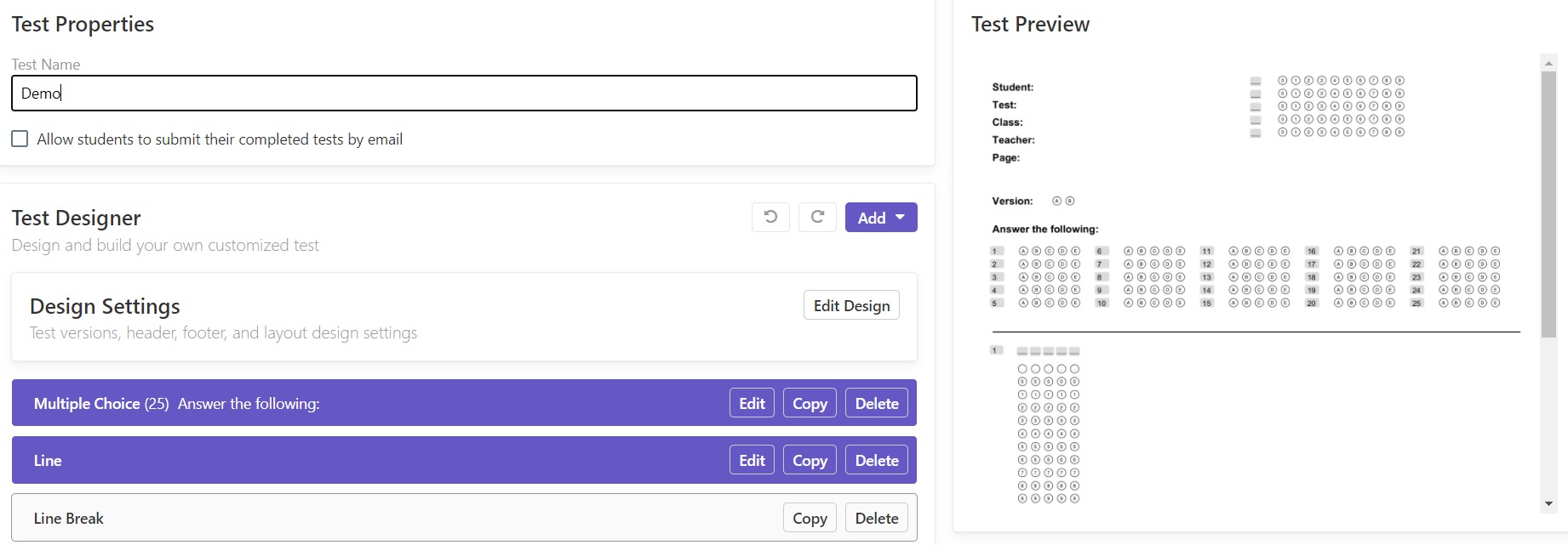 The fully cloud-based application allows individual instructors to create paper or online tests, quizzes, and assessments that can be automatically processed and graded. In addition to multiple choice items, tests can contain open response items that are graded on-screen by the instructor. Remark Test Grading is not tied to any particular hardware, so paper forms are printed on any printer and scanned with any scanner or MFP.
