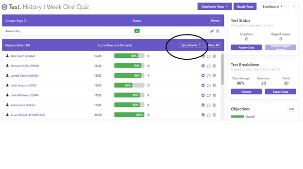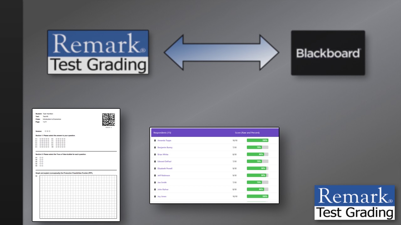 Using the Blackboard REST API, the Blackboard Connector for Remark Test Grading allows you to seamlessly import your class rosters and tests, and then send the test grades back to Blackboard, all with just a few clicks. Once the Administrator makes the connection between Remark and Blackboard, individual instructors can connect to their Blackboard accounts quickly and easily where they will have access to pull in their class rosters and tests. It's easy to use interface allows you to easily assess students and then send the grades back to the Blackboard portal. Except for grades that are sent to Blackboard for a given assessment, Blackboard will always remain the primary source for your data, changes cannot be made to Blackboard classes or students from within Remark.