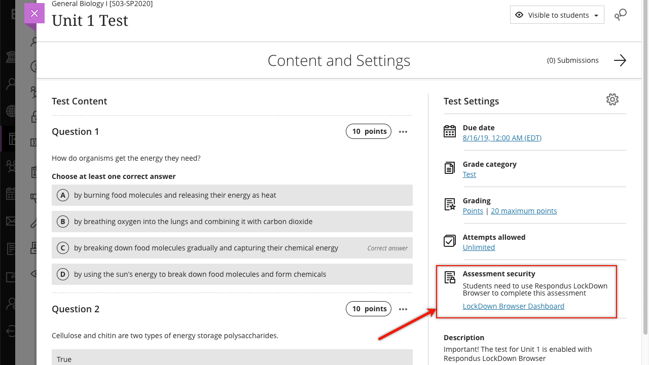 - Assessments that are set up for use with LockDown Browser cannot be accessed with other browsers