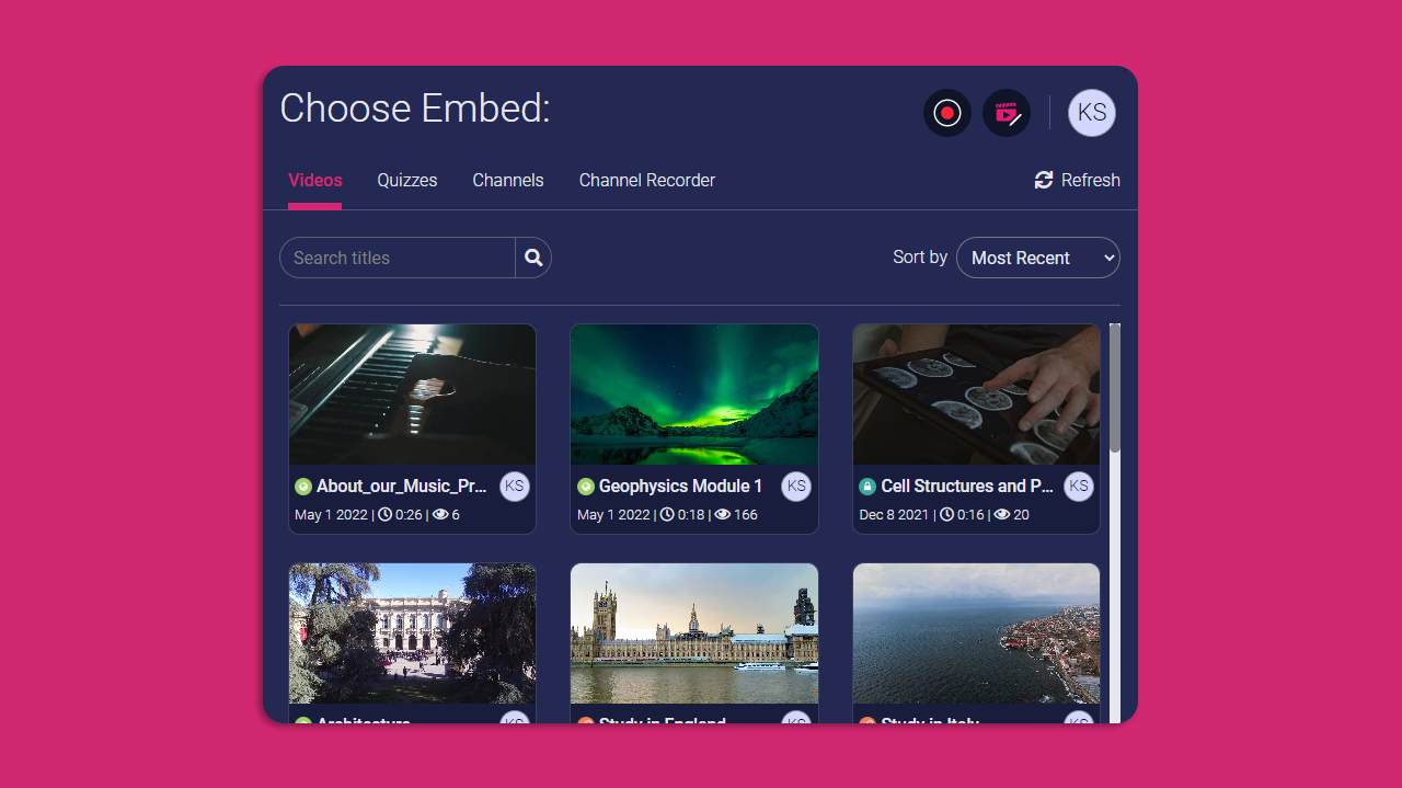 Easily record, upload, manage and share videos, images, channels and interactive video quizzes with students directly in your Blackboard environment.