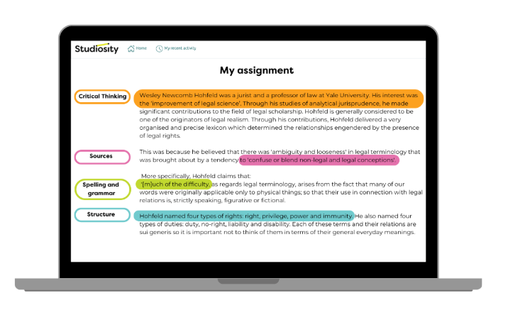 Studiosity is ethical, AI-powered feedback and study support at scale for student learning.