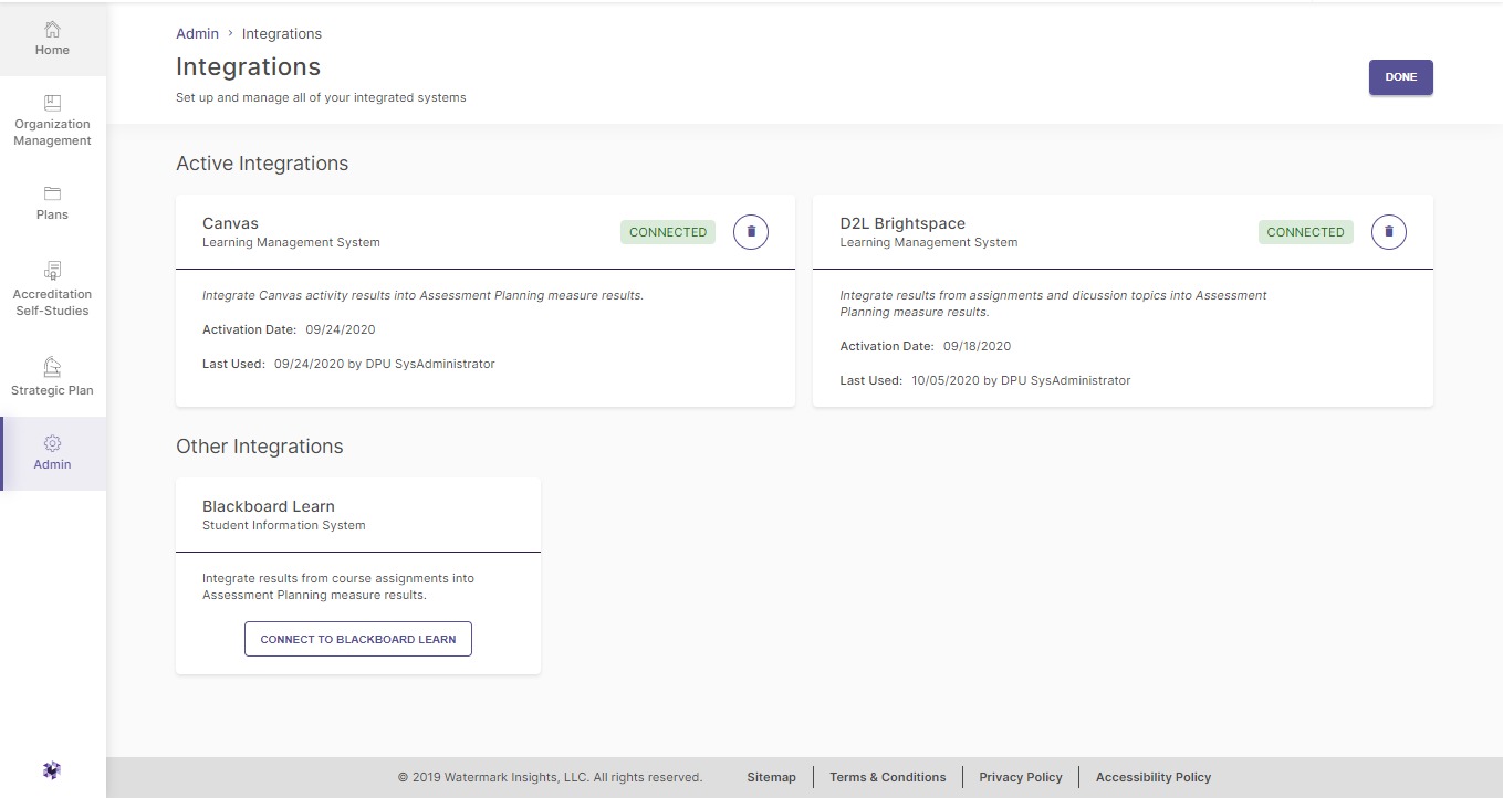 Watermark Planning & Self-Study supports the critical, foundational work of assessment planning and accreditation. Manage all assessment efforts, get results faster, engage in meaningful self-study, document institutional effectiveness for accreditation, and focus on improving student outcomes in a single, easy-to-use system.